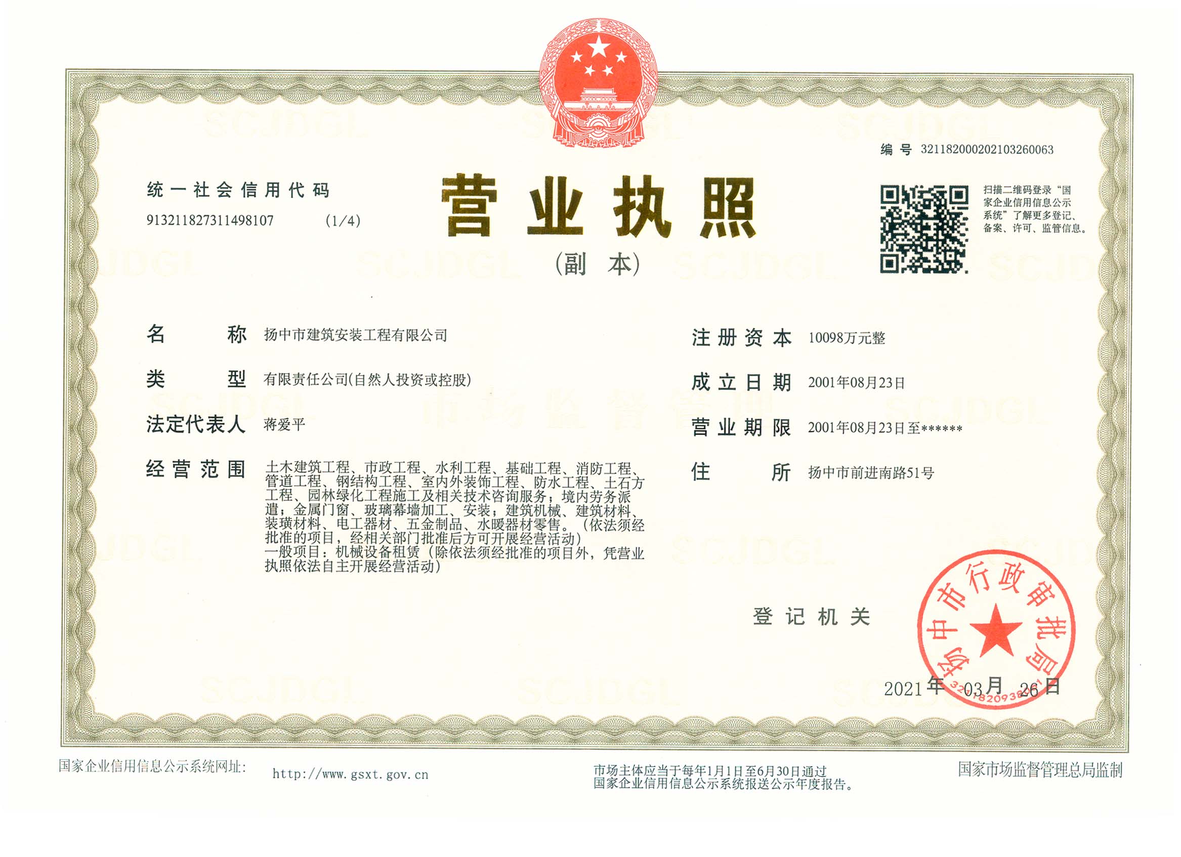 揚(yáng)中市建筑安裝工程有限公司是房屋建筑工程施工總承包國家一級和市政公用工程施工總承包國家一級資質(zhì)施工企業(yè),并具有地基基礎(chǔ)工程專業(yè)承包、起重設(shè)備安裝工程專業(yè)承包、建筑裝修裝飾工程專業(yè)承包、消防設(shè)施工程專業(yè)承包、建筑機(jī)電安裝工程專業(yè)承包、鋼結(jié)構(gòu)工程專業(yè)承包等資質(zhì),在上海、南京、鎮(zhèn)江、蘇州、常州、沭陽、蕪湖、湖北襄陽等地設(shè)有分公司。60多年來,公司承建了一大批工業(yè)與民用建筑,為地方經(jīng)濟(jì)和...